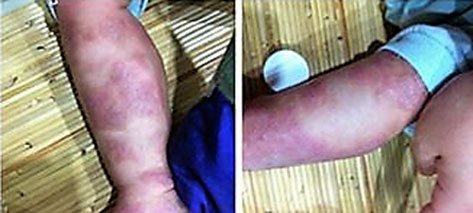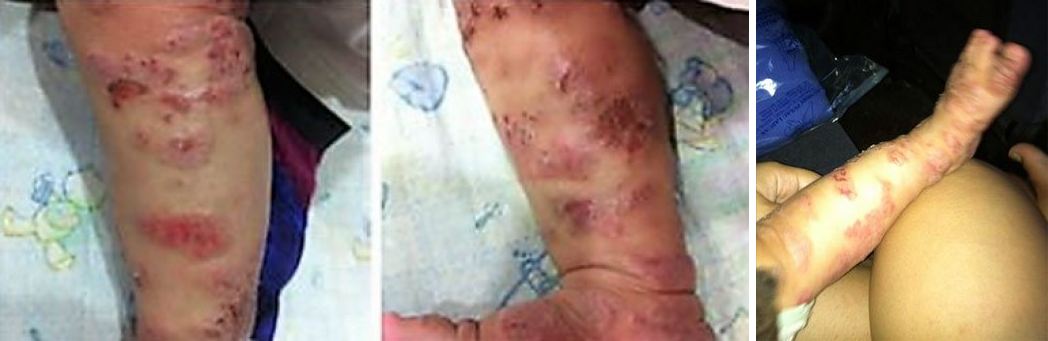 His infected areas started to heal after a few applications. The heavy toxin that had accumulated was significantly reduced as you can see. It faded becoming light pinkish in color after being a dark red purple color.